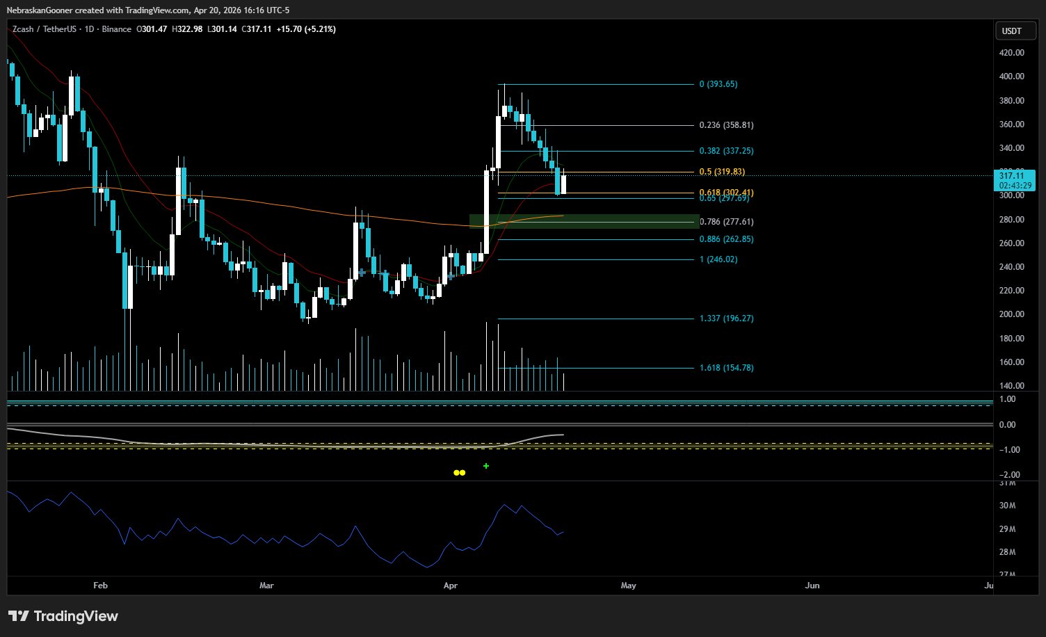 $ZEC ZEC has retested the 4‑hour Vegas tunnel and is rebounding. Whether it can make a new high is uncertain, as the daily chart is still down. Only if the market strengthens over the next few days and the daily moves up could it break a new high. https://t.co/e6yxkUeDIb