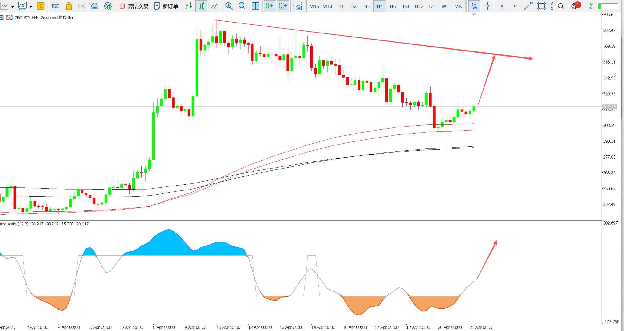 ZEC rebounded from the 4‑hour Vegas tunnel, but whether it can set a new high depends on whether the daily trend turns strong.