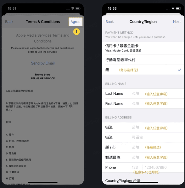 • 步骤三:选择"地区",填写常用邮箱,提供能够收到验证码的手机号码。