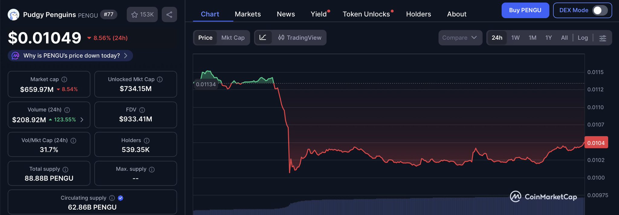 - اتجاه PENGU بعد الإصدارهابط بشدة