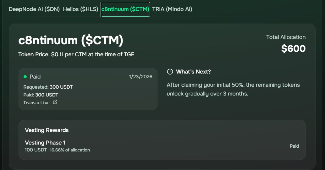 Thank you so much for @MindoAI, @c8ntinuum & @helios_layer1 on the speedy paid out in our escrow account on Mindo till the official claim at end of campaign.