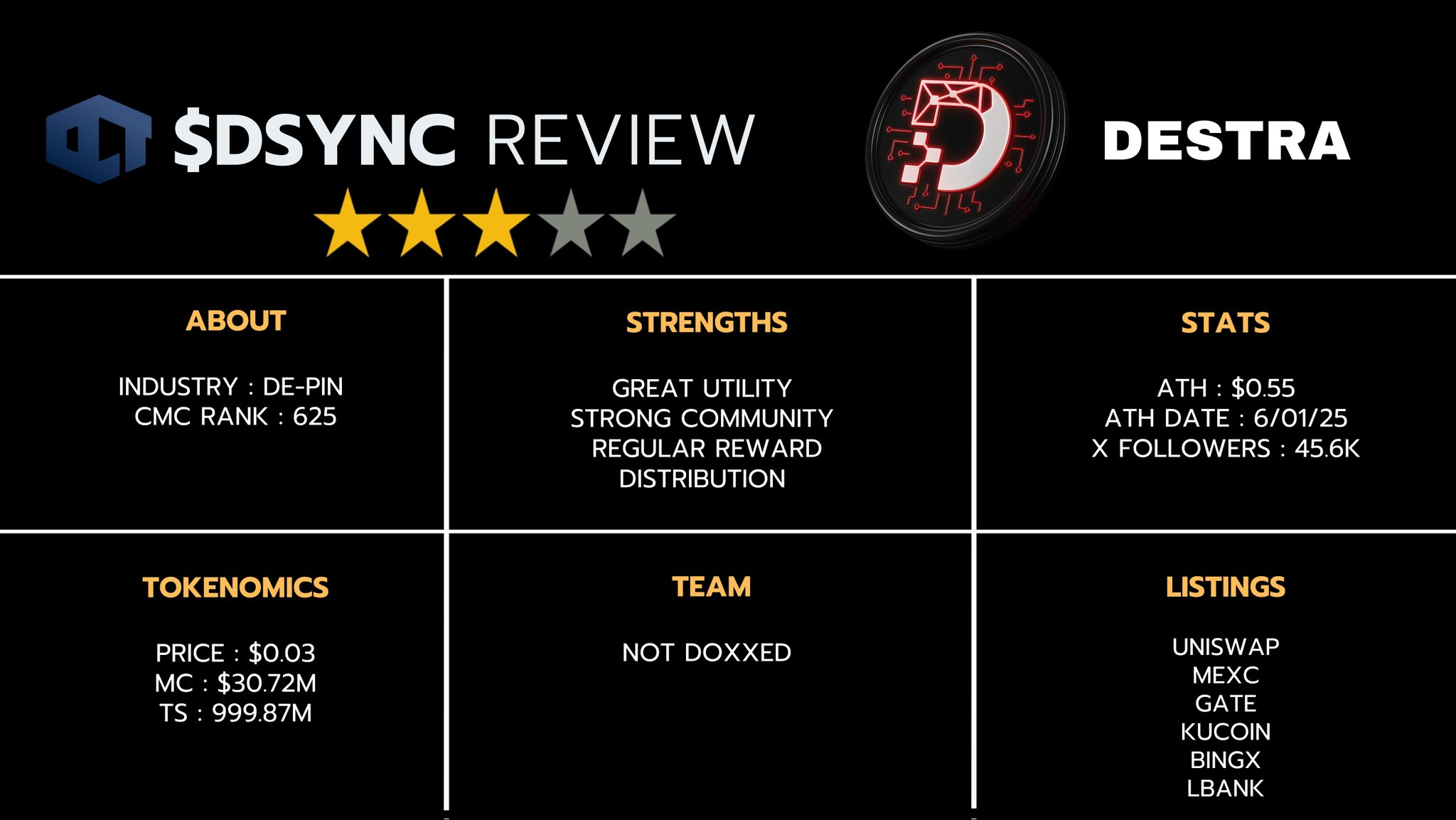 • Destra Network ( $DSYNC) stands out by offering a truly decentralized infrastructure, addressing the shortcomings of dApps that still rely on centralized components