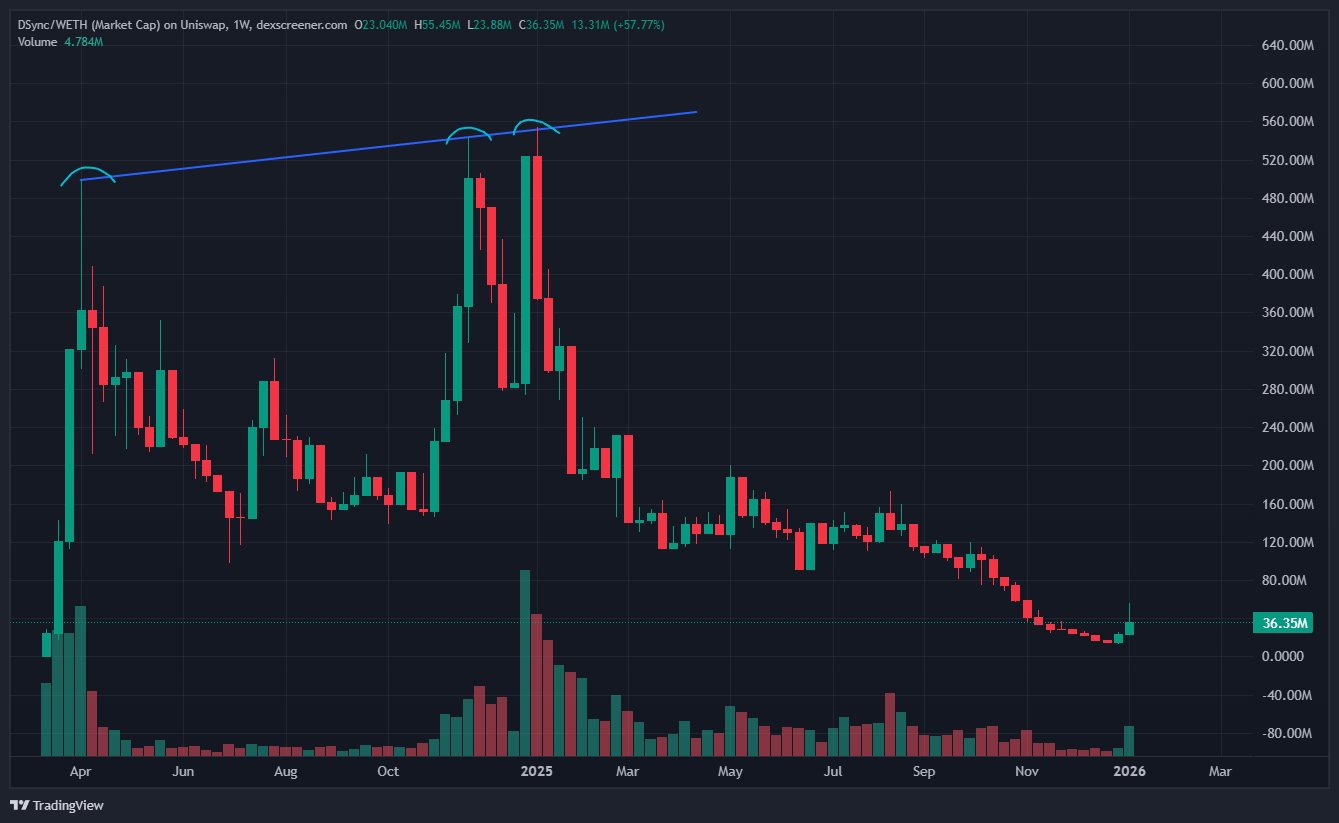 DSYNC/WETH market cap sharply fell, author exclaimed 'ouch'.