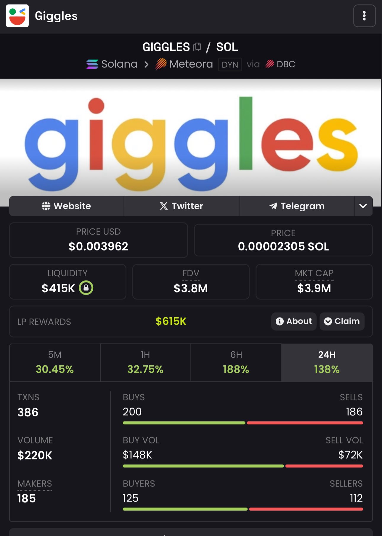 تتبع سعر Giggles لليوم، و7 أيام، و30 يومًا، و90 يومًا