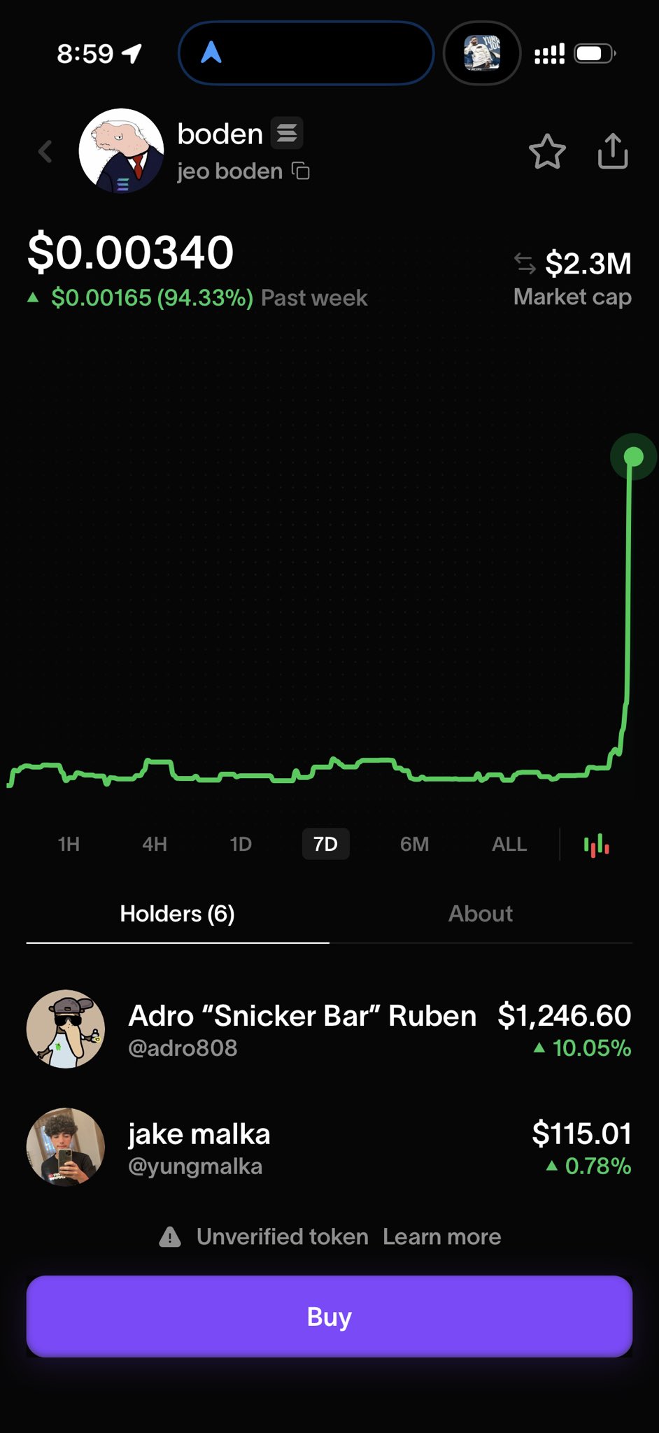 $BODEN ran to $700M ATH