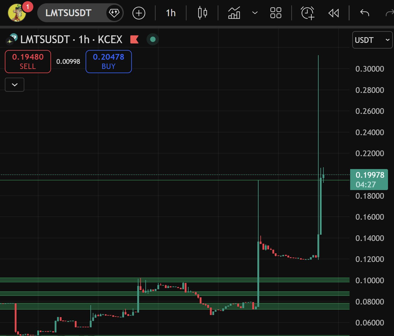LMTS price surged sharply, up 63% today and 185% in two days, showing strong performance against the market trend.