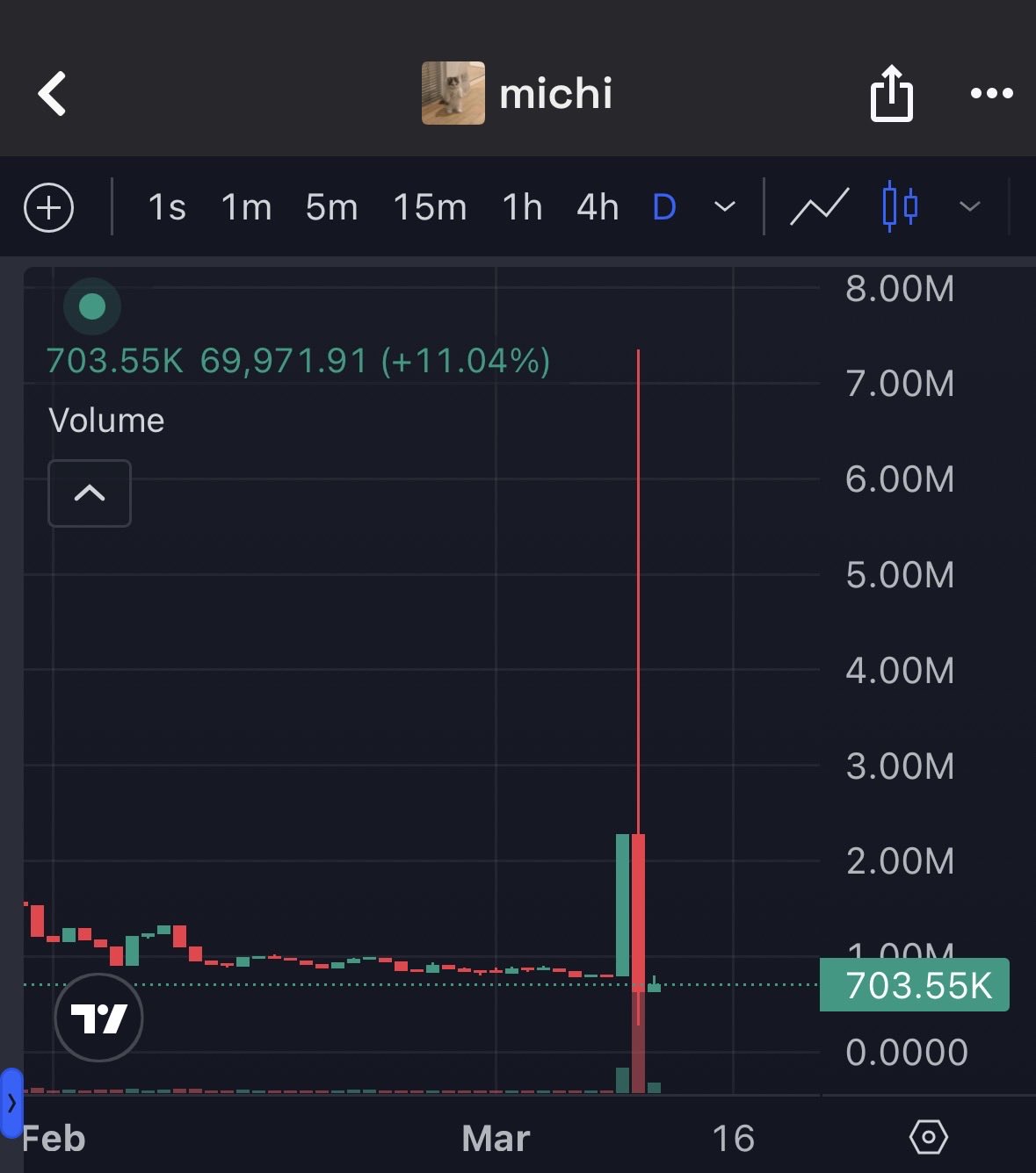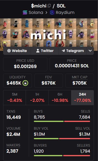 This is insane\n\nMICHI just did a 500% pump which began after a little shitposting I did earlier in the day\n\nIf you made any money from this, please take some profits off the table\n\nThis pump is quite suspicious in my opinion. https://t.co/M1nbBV9cer