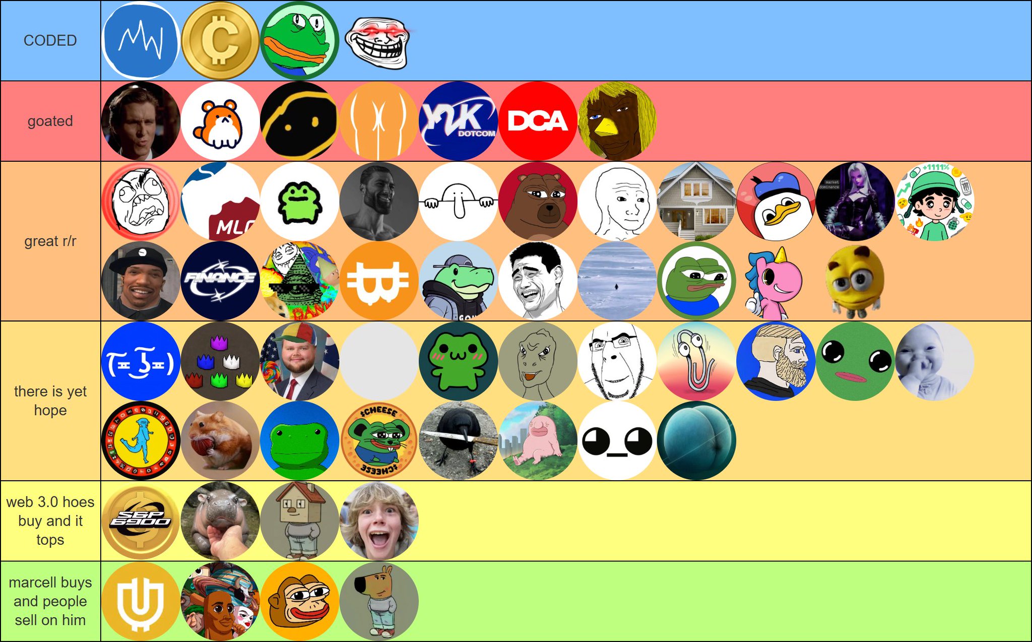 The tweet sarcastically ranks meme coins in a bear market, hinting at their complex role in market distress.