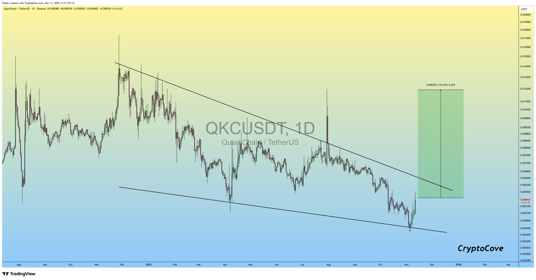 QKC breaks the downtrend line, expected to experience explosive rise, target profit over 100%.