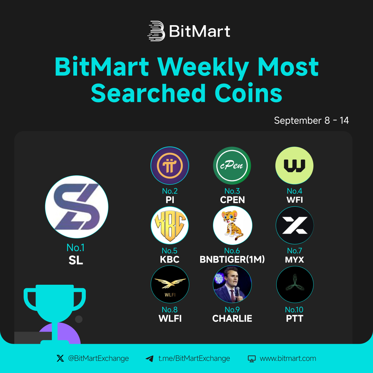 🔍 #BitMart Weekly Most Searched Coins (Sep 8-14)