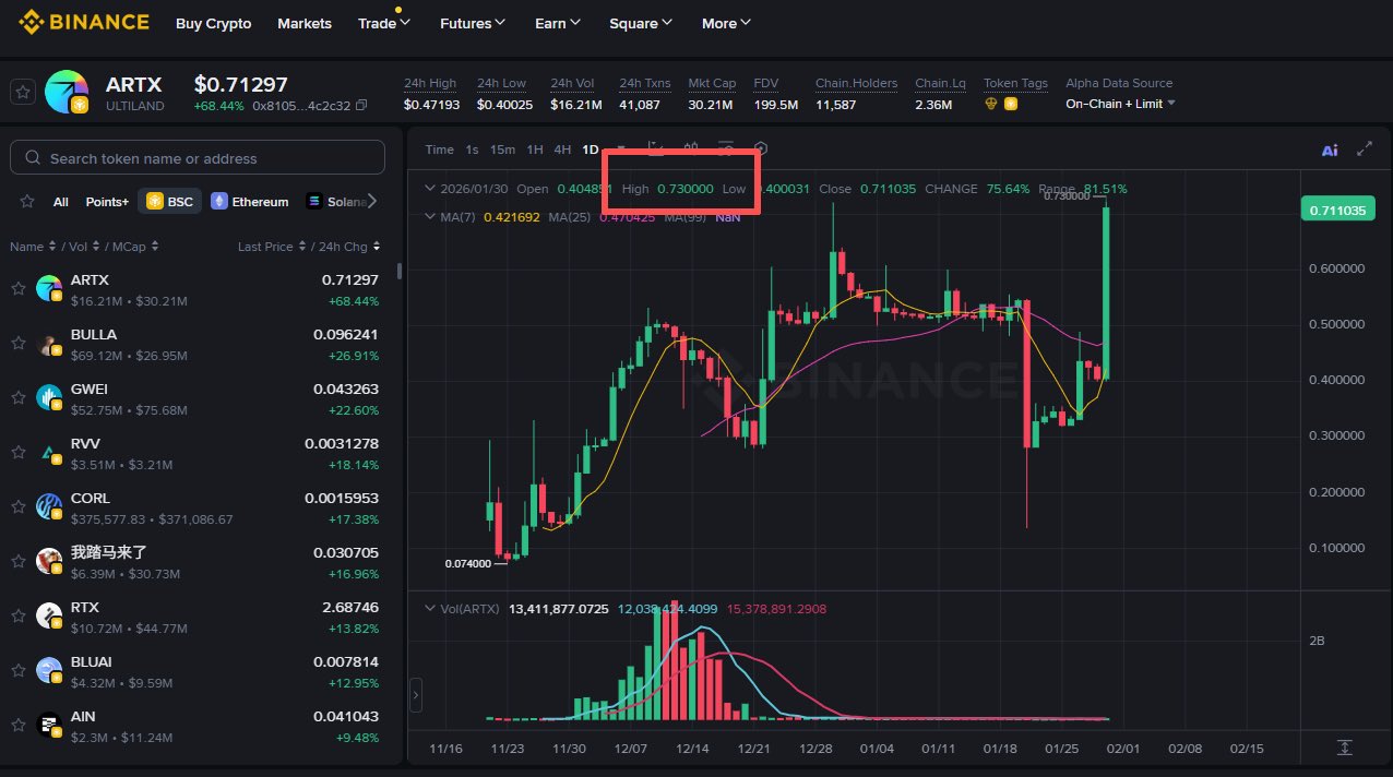 ARTX hits an all-time high of $0.73, showing strong upward momentum and ecosystem expansion.