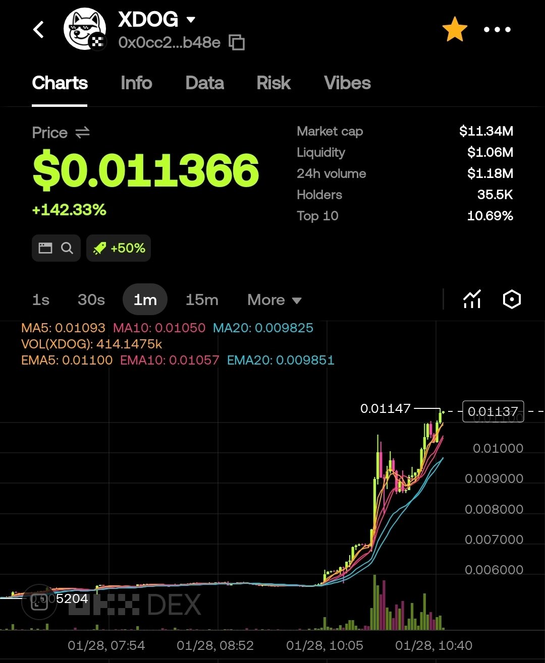 So let’s start with the first token. The only one that has ever shown me a glimmer of light is XDOG. The community is relatively stable, there are managers providing reassurance, many users lock their tokens voluntarily, and it’s the only XLayer token that has entered the boost quasi‑spot channel. Yet it’s still barely hanging on – XLayer traffic is extremely scarce, the “kids” on XLayer have no parents to care for them, and after three months they have to become self‑reliant, looking for milk on their own. Enough sentiment, let’s begin: 🐶 XDOG (XLayer ecosystem Meme)