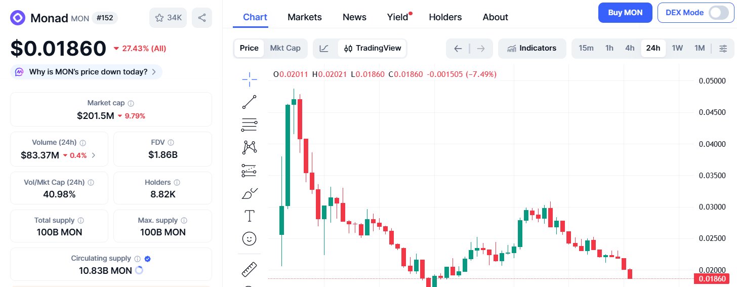 K G (MON to $1) Founder NFT_Expert A8.95K @KGdotmonSpiky D36.14K @spiky_xyz130 37 8.90K Original >Trend von MON nach VeröffentlichungBärisch- Trend von MON nach VeröffentlichungBullisch
