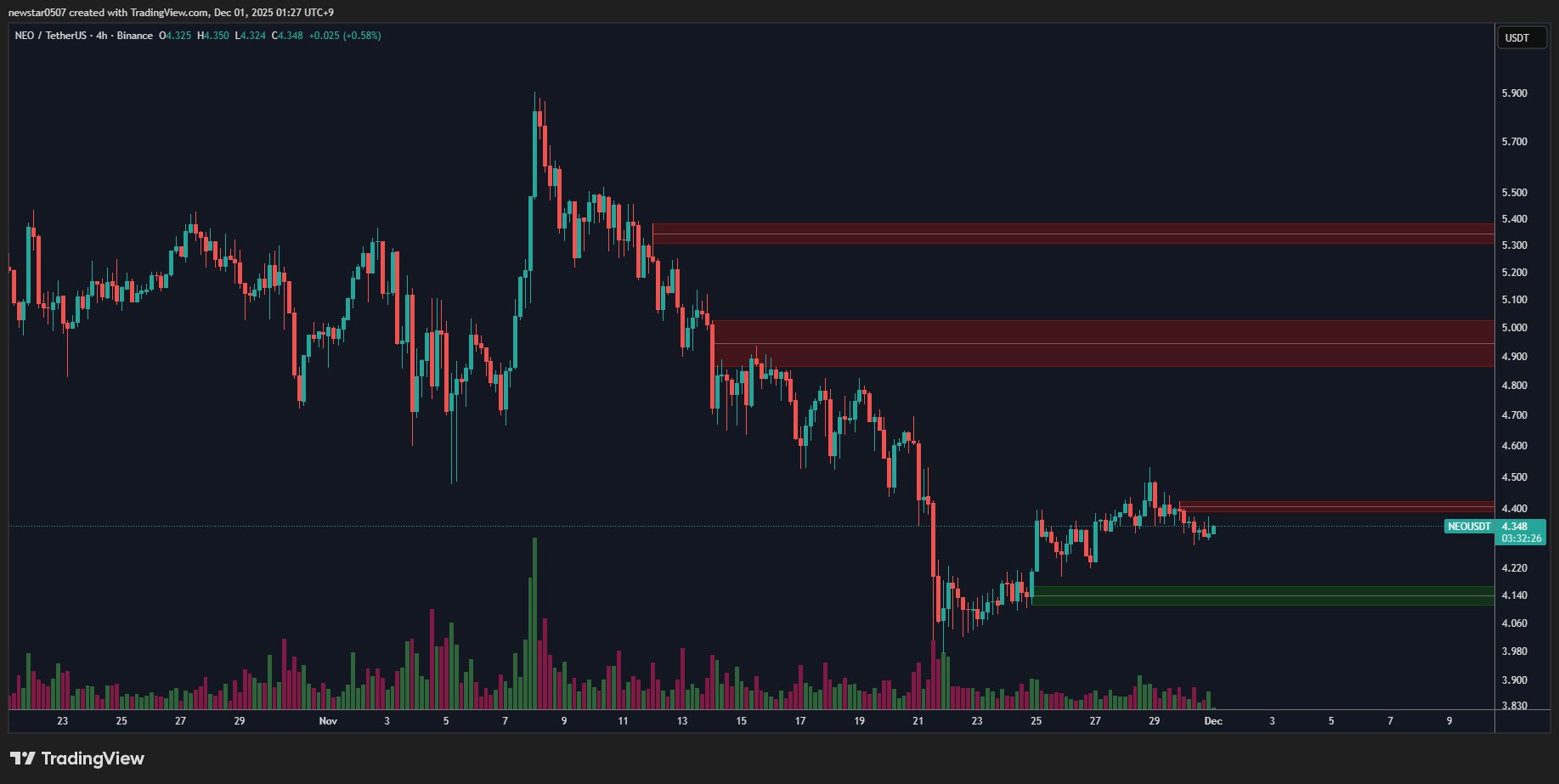 4 1 673 Original >Trend von NEO nach VeröffentlichungBärischNEO faces significant selling pressure at $4.9, limiting short‑term upside.