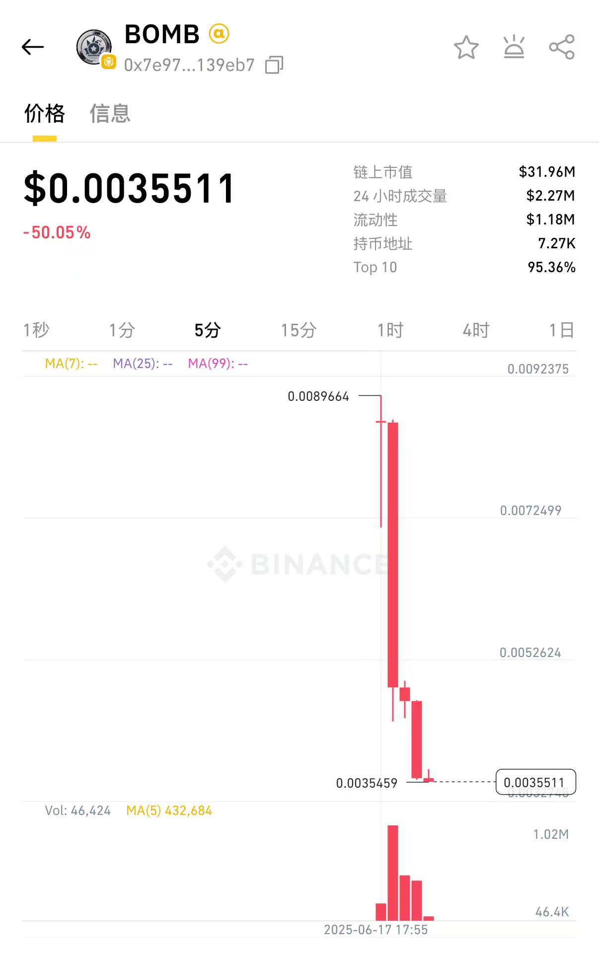 Those who filled up received 7620 $BOMB. If you didn't sell at the limit price of 55u, it's only 27u now, and you still have to deduct nearly 10u in costs.