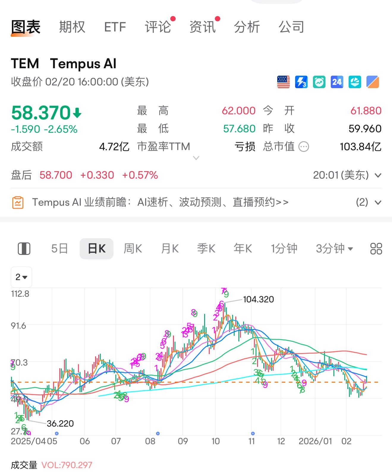 $TEM I am no longer bullish on it; I bought a wave earlier,