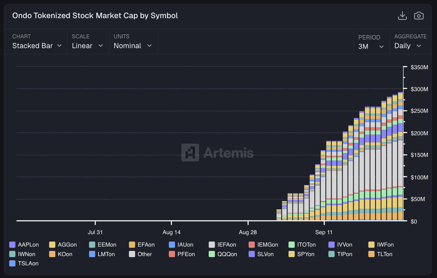 Track the price of Apple Tokenized Stock (Ondo) for today, 7 days, 30 days and 90 days