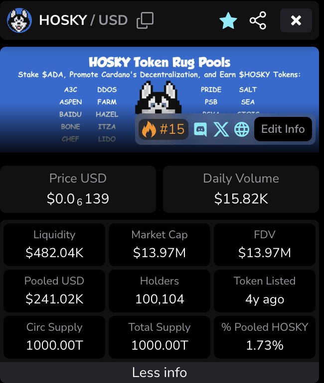 One of Cardano’s most prominent memecoins, $HOSKY, has now surpassed 100,000 holders.