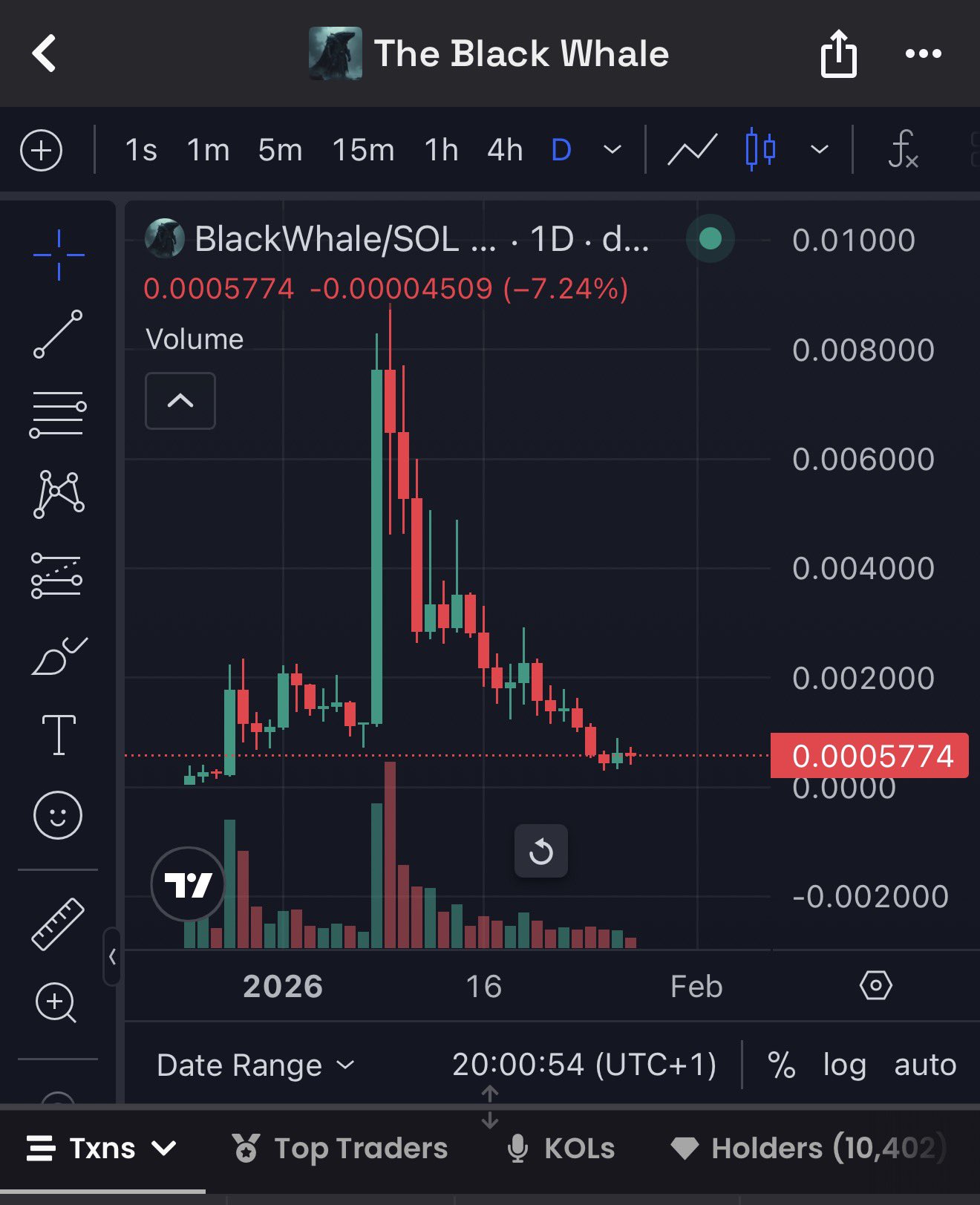 Track the price of The Black Whale (blackwhale.fun) for today, 7 days, 30 days and 90 days