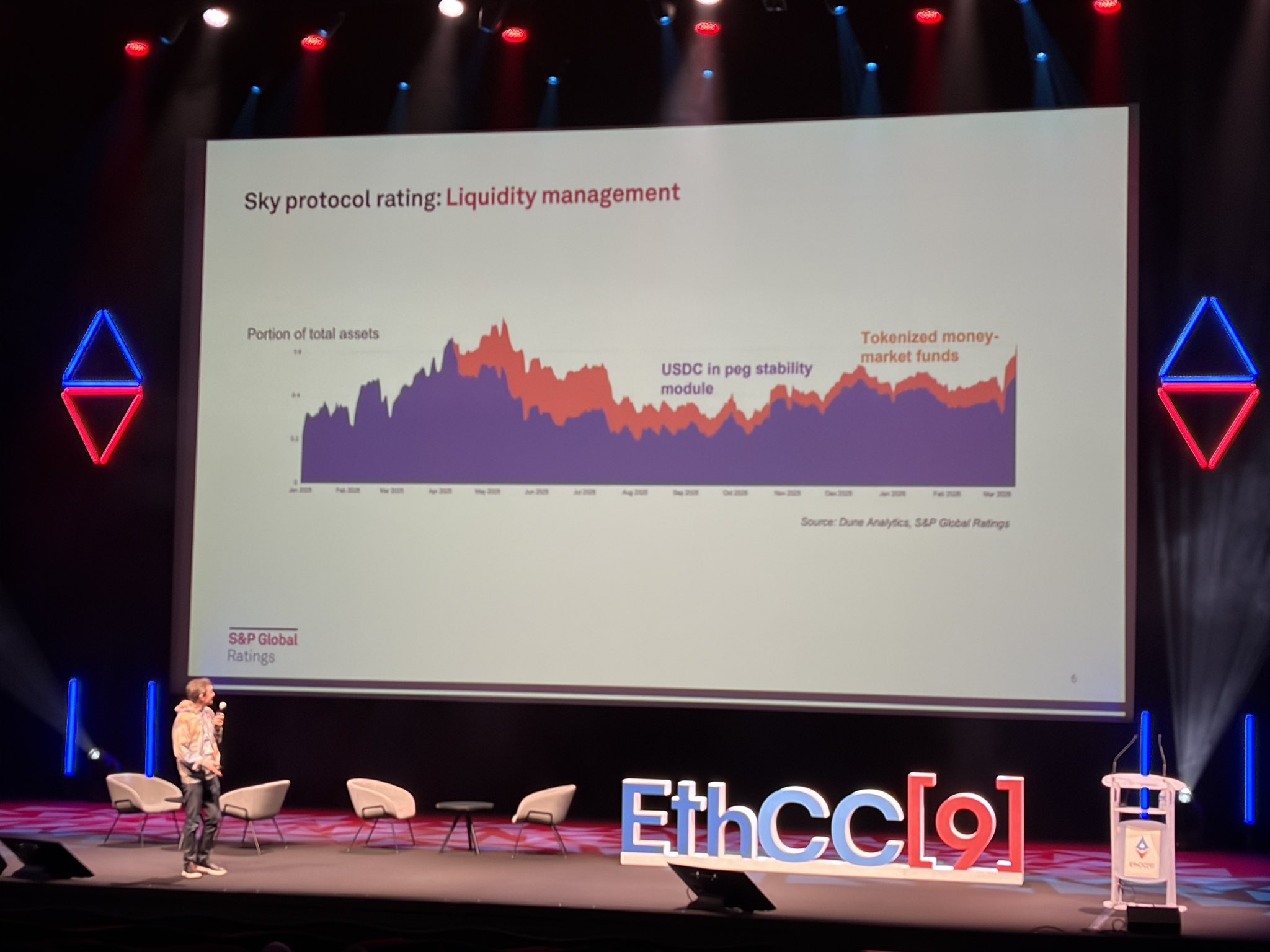 S&P Global Ratings’ Crypto Lead on stage at @EthCC Main Stage showing how they use @Dune to monitor @MakerDAO / Sky liquidity management in real time 👀 https://t.co/chwjz9LY2X