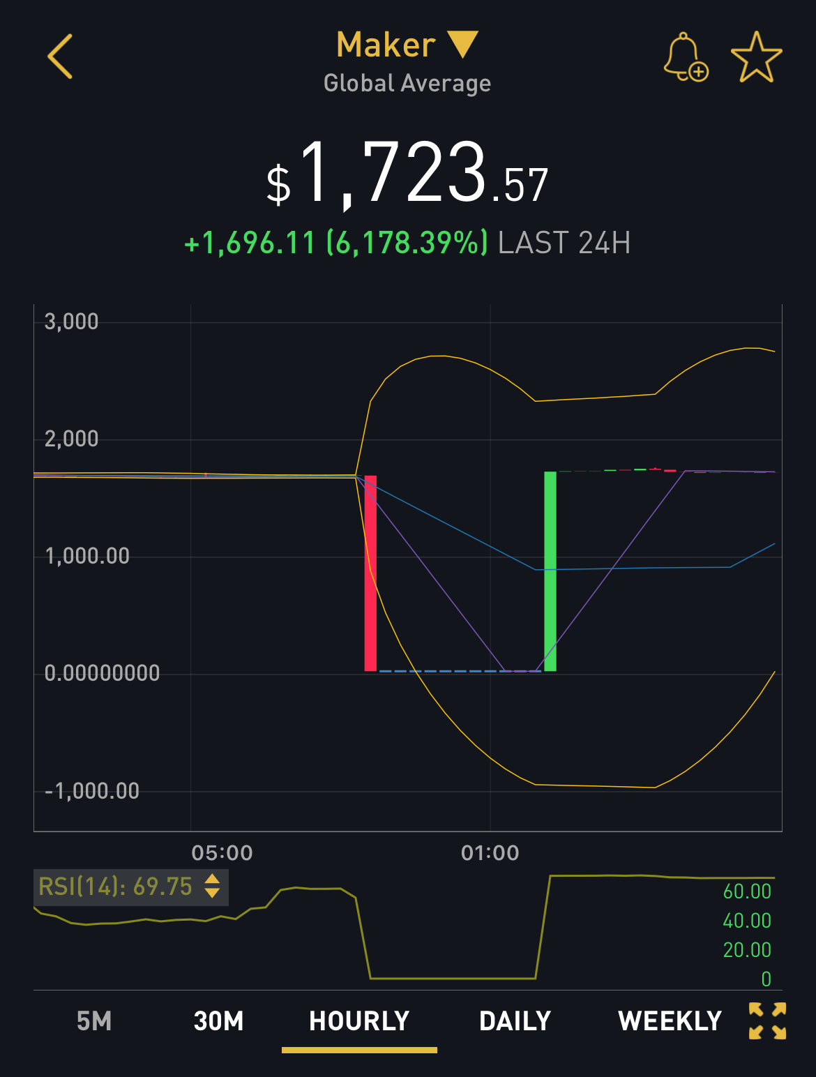 Maker (MKR) surged over 6000% in 24 hours, price reaching $1723.57.