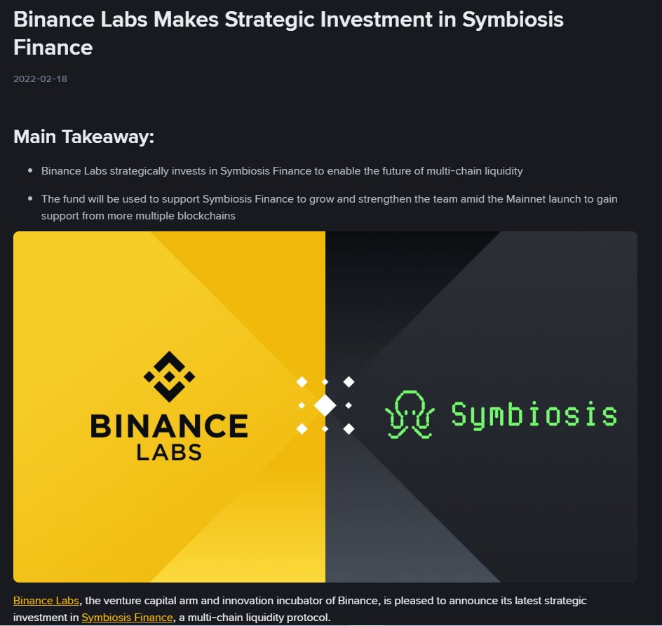 "Symbiosis Finance is a company that makes a significant contribution to the multi‑chain future of cryptocurrency. We are delighted to support Symbiosis Finance and work closely with the team to build a shared vision."