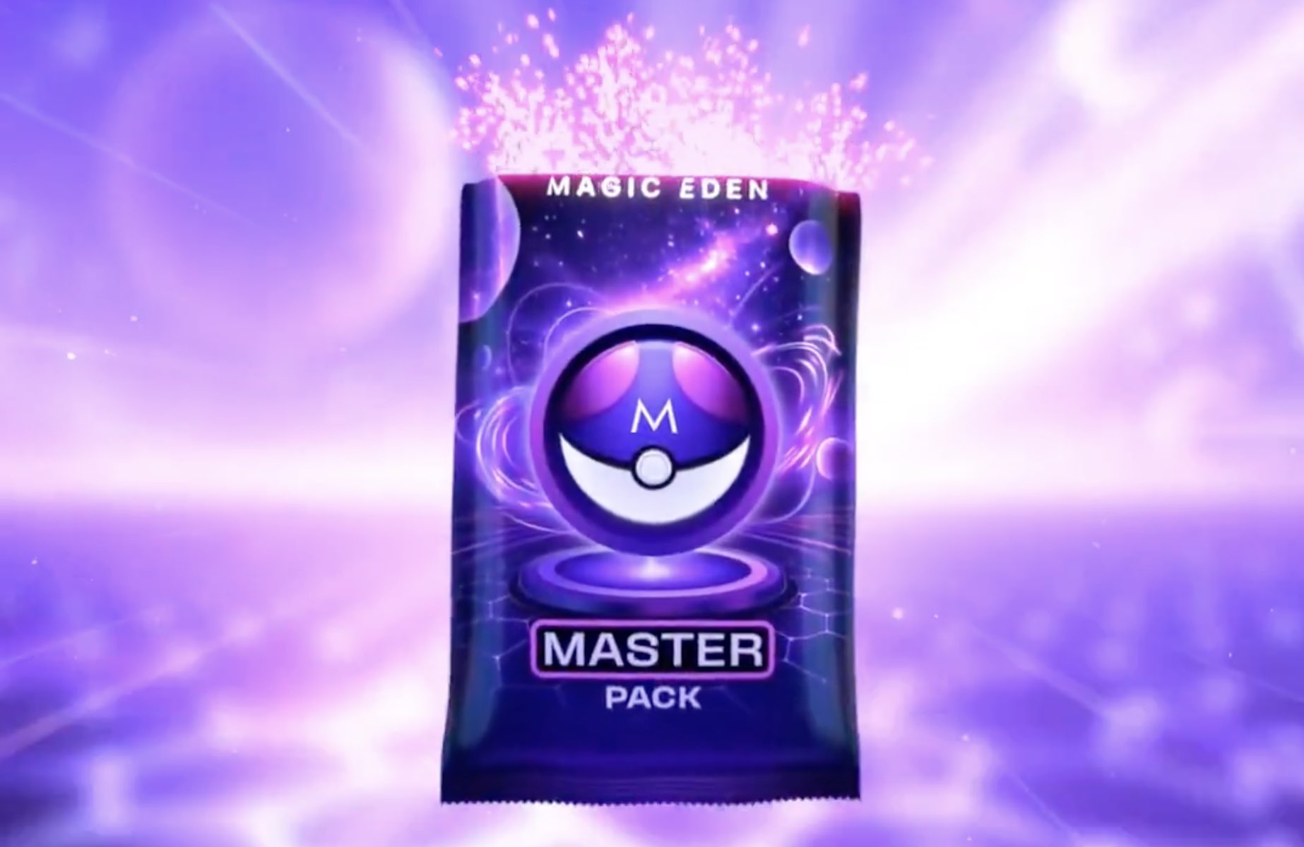 Magic Eden packs, holding Pokemon cards or NFTs, with continued high volume and interest.