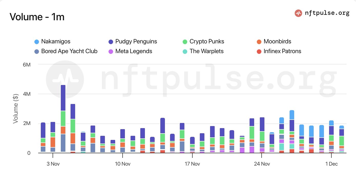 Not easy to find winners this month as everything is down bad. But we have Good Vibes Club and CloneX with a strong month.