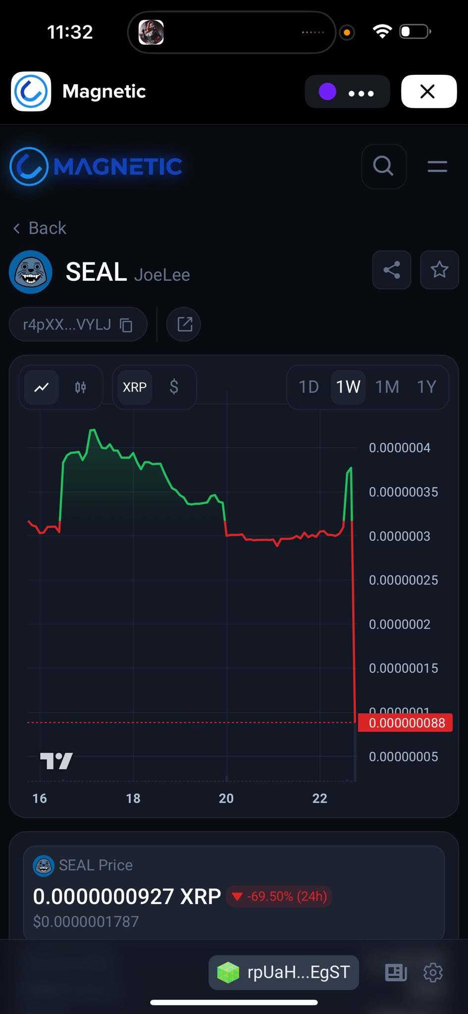 The SEAL token appears to have suffered a rug pull, with its price plunging nearly 70% within 24 hours.
