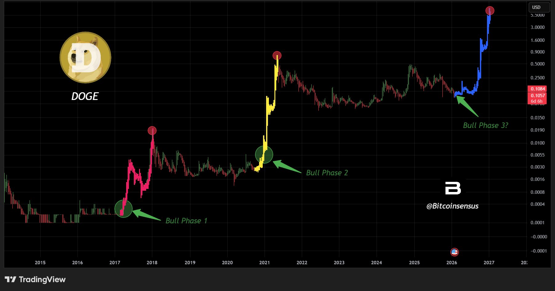 If this market cycle mirrors past ones, #Dogecoin could potentially climb toward the $5 range.