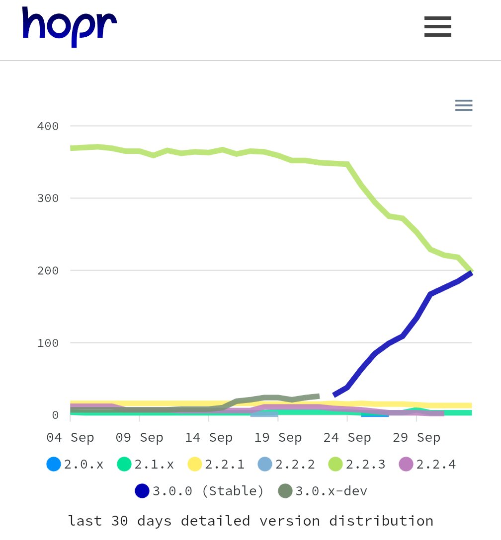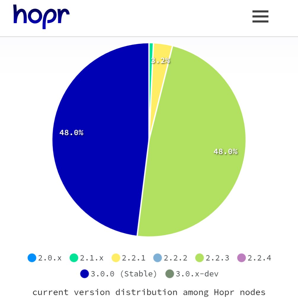 Last week we released a major new version of the @hoprnet mixnet client (hoprd). Today, 50% of the network has already upgraded.