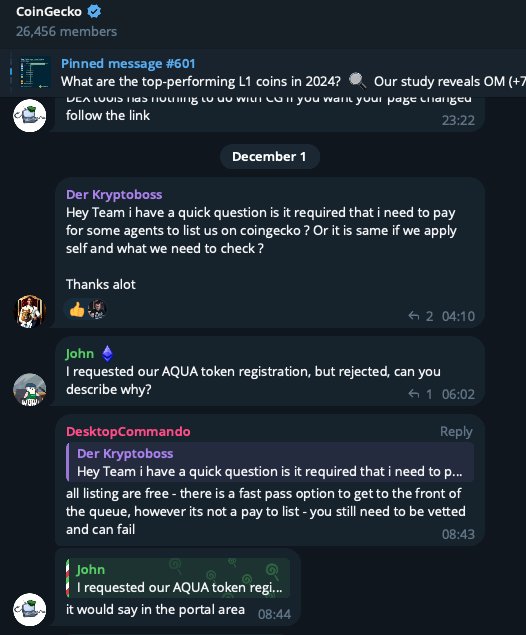 Here is a Nick (now John) trying to get AQUA listed on Coingecko...