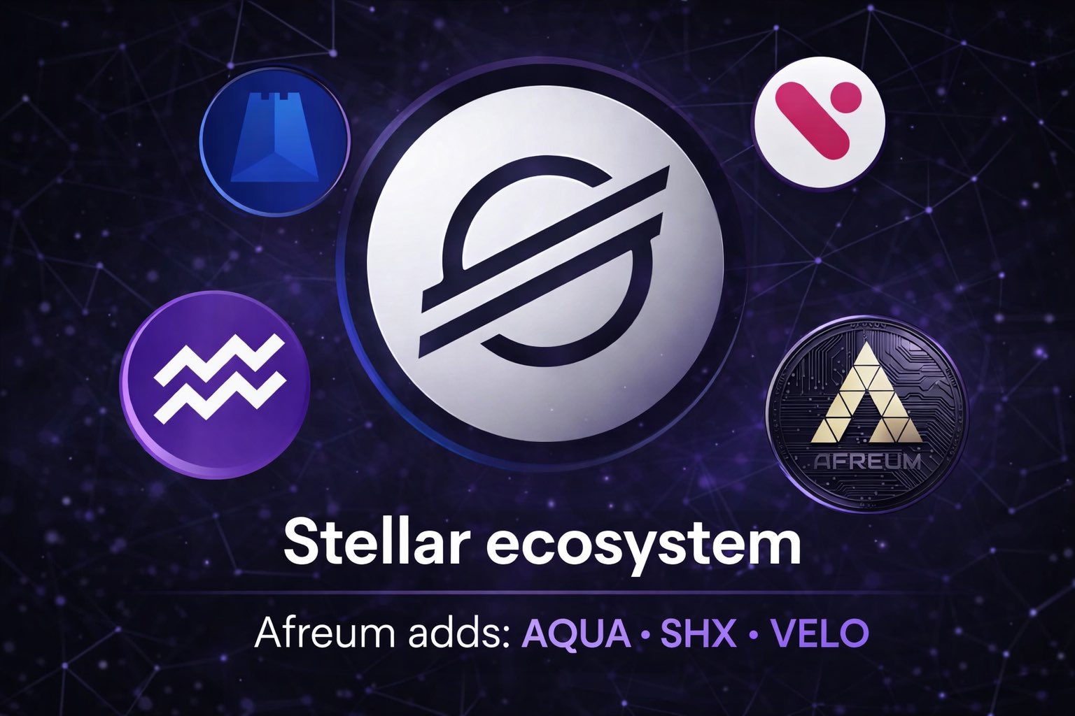 Afreum added support for AQUA, SHX, VELO, seen as a key step to enhance liquidity and utility of the Stellar ecosystem.