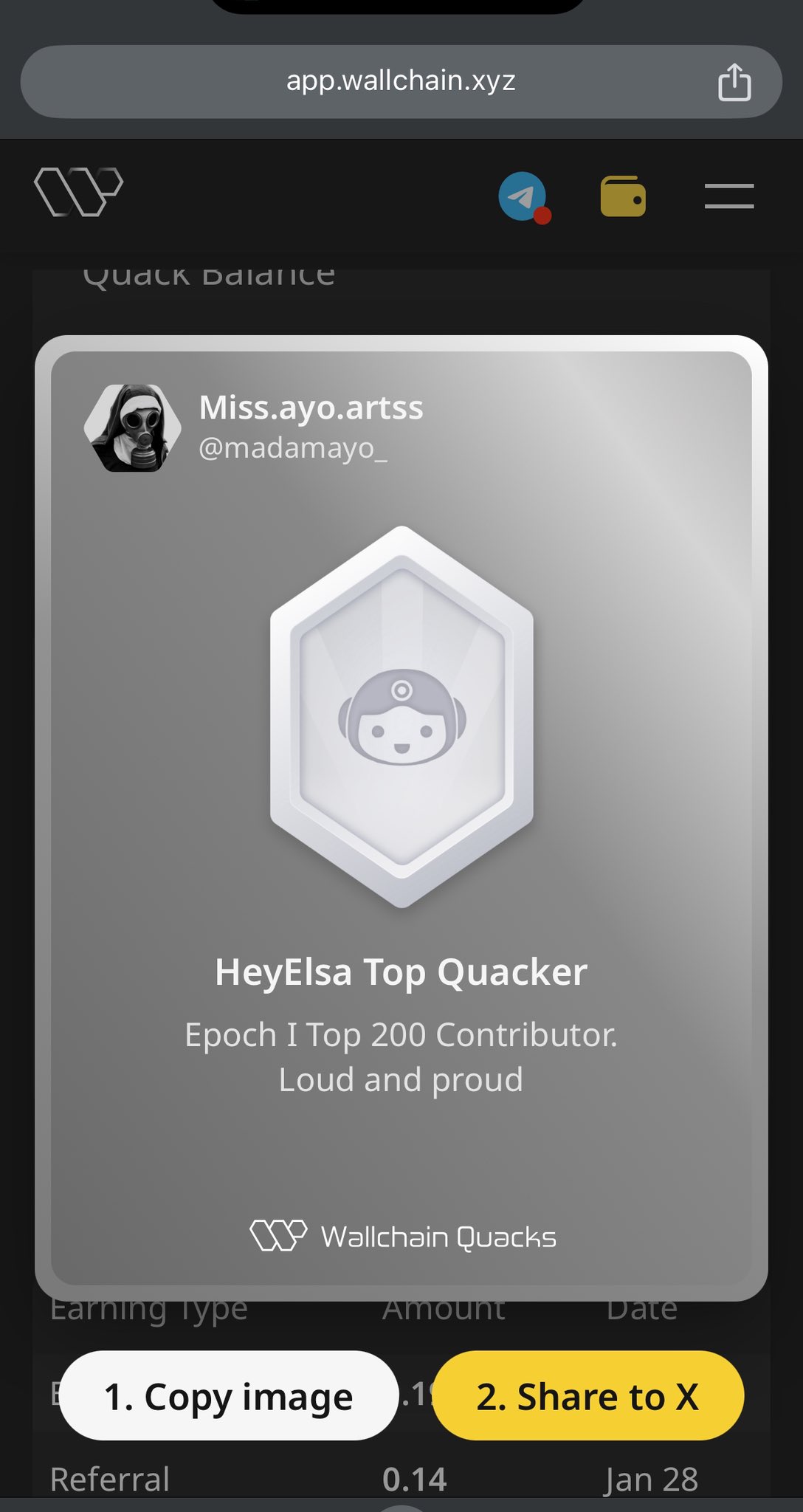Miss.ayo.artss D125.83K @madamayo_$207 secured from Wallchain via the $ELSA airdrop. This covers Epoch 1 and 2. My first win with Wallchain. My third win in InfoFi. The Elsa team didn’t meet expectations and initially didn’t want to reward us for preaching about them, but somehow they found a way. Web3 did. Make I use this one hold body.