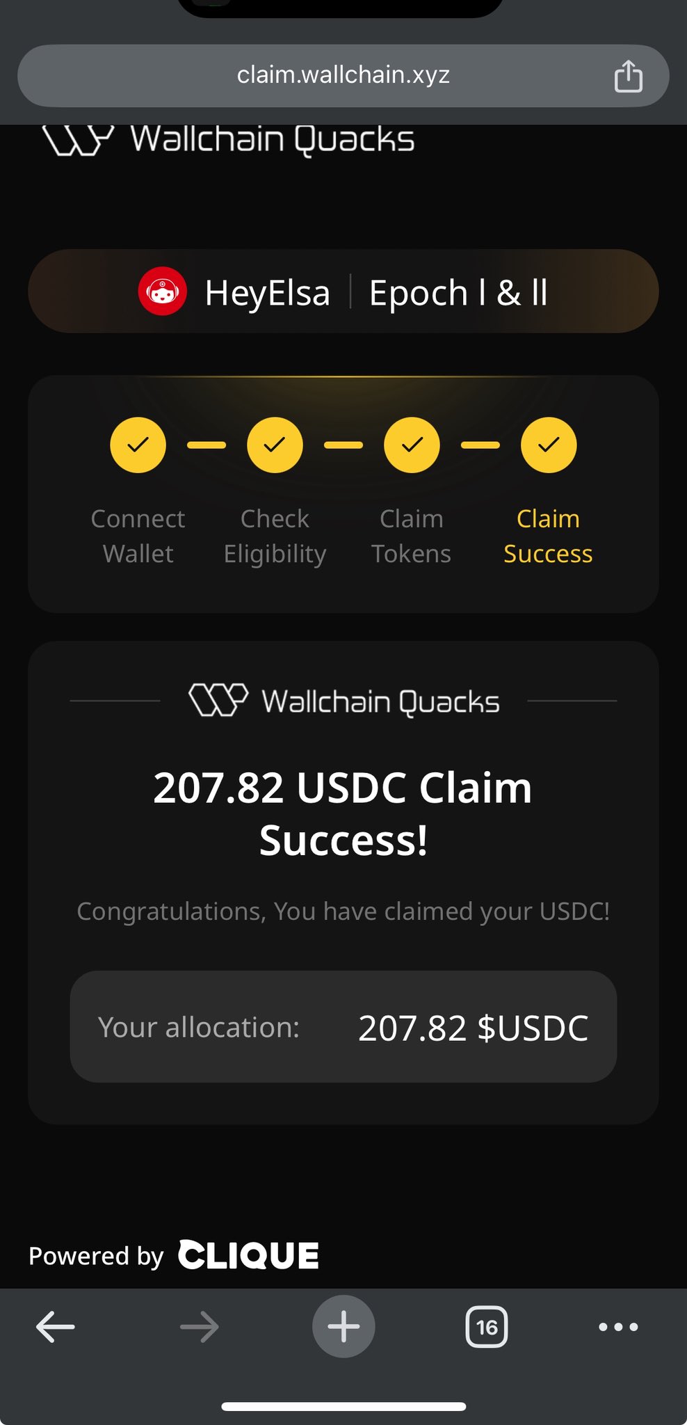 187 95 5.55K Original >Trend of ELSA after releaseBullishThe author successfully obtained 207.82 USDC through the ELSA airdrop, considering it a victory for Web3.