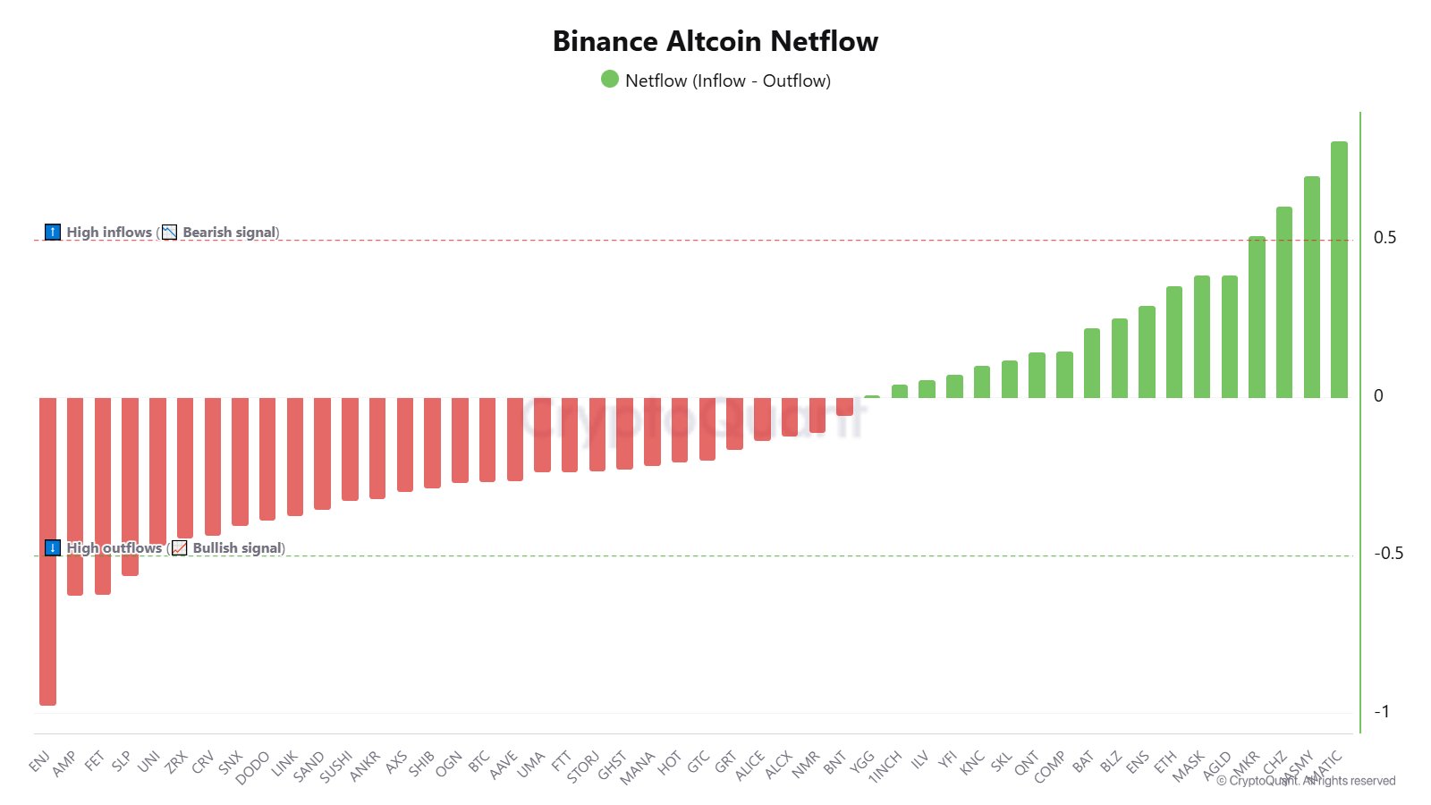 CW TA_Analyst OnChain_Analyst B16.74K @CW8900Coins saw outflows from Binance include $ENJ, $FET, $AMP, $SLP, and $UNI. Outflows from the exchange are a bullish signal. On the other hand, $MATIC, $JASMY, and $CHZ saw higher inflows. https://t.co/P30cYIYwUU