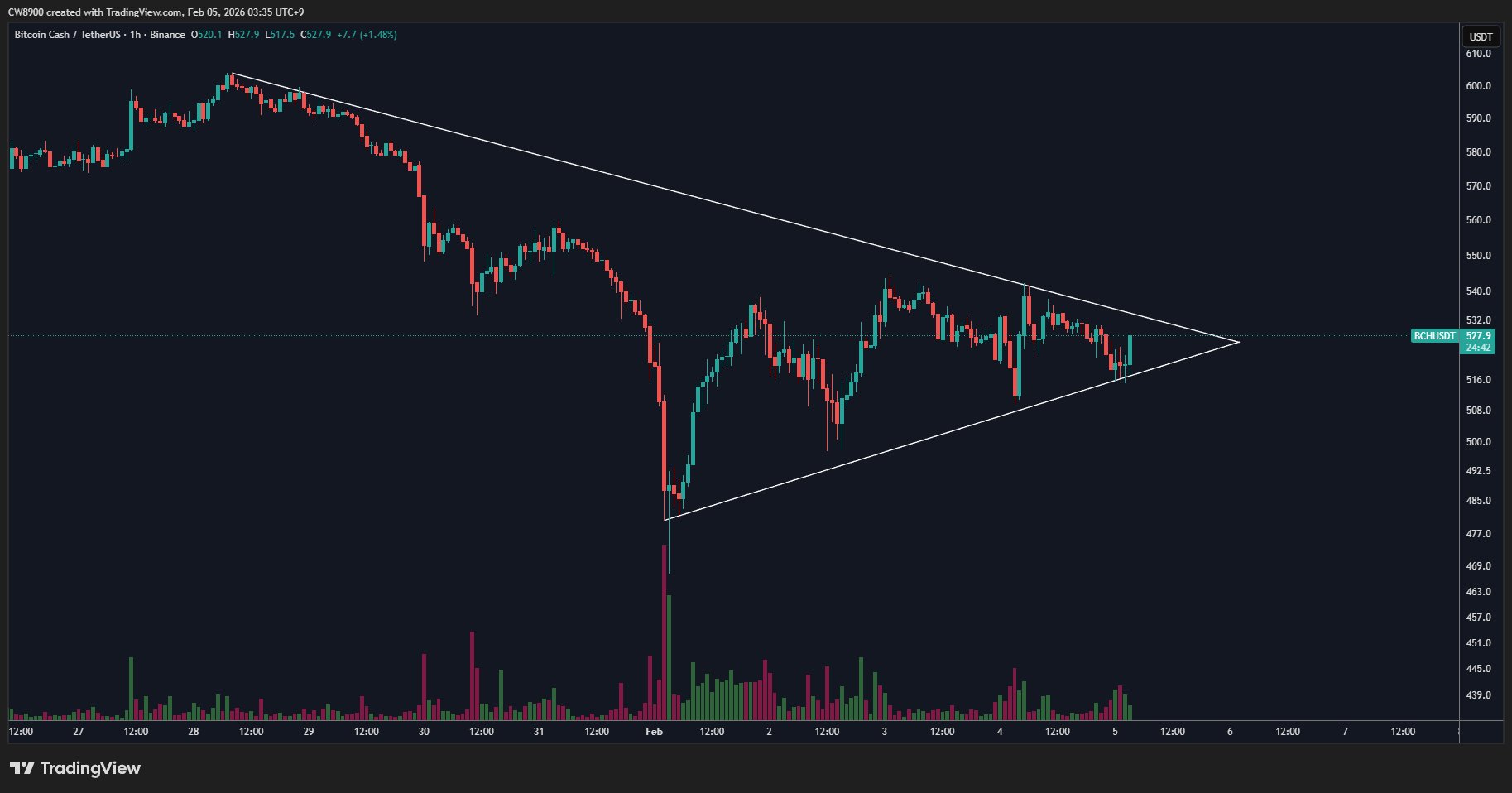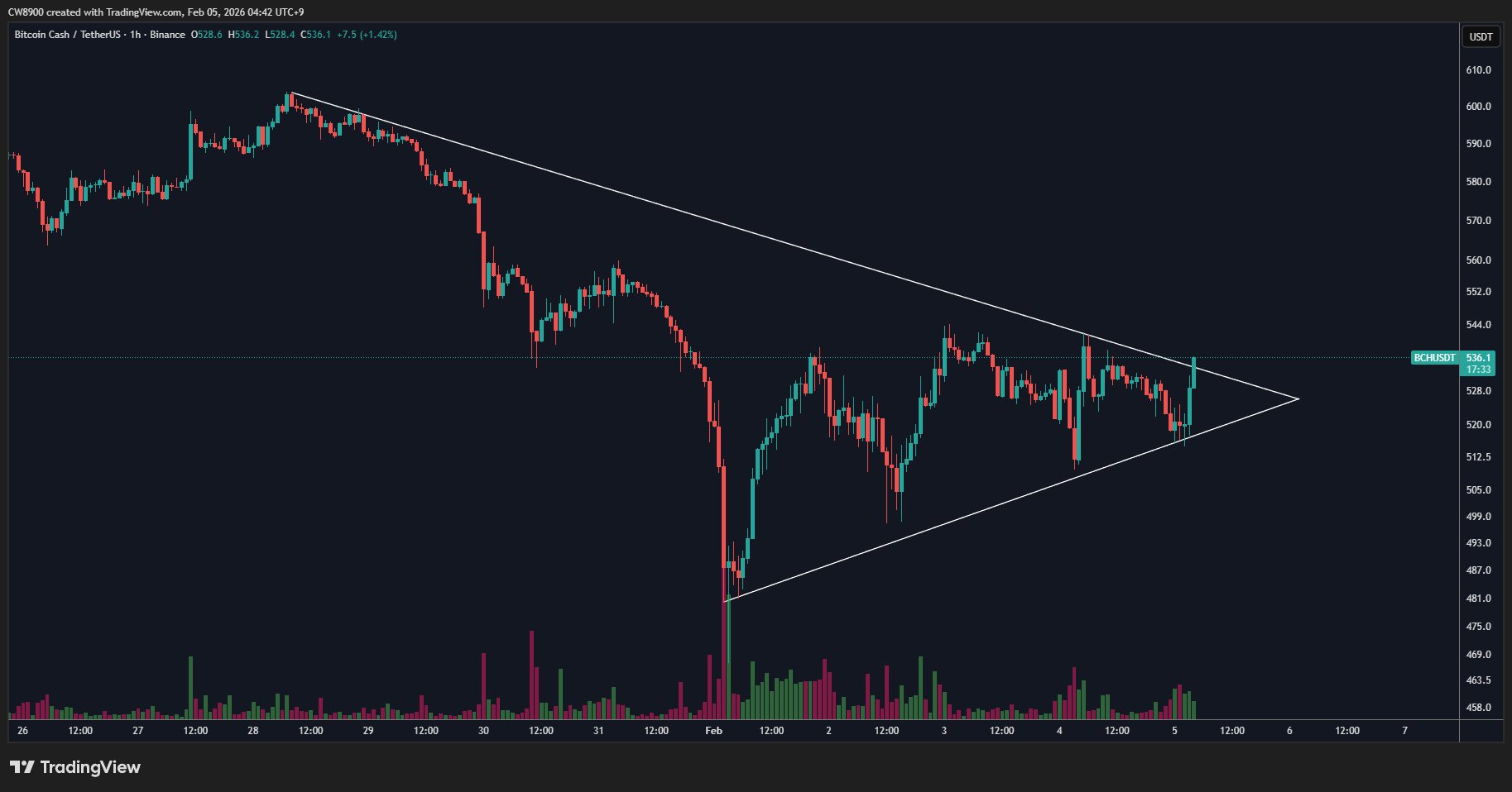 BCH breaks out of a converging triangle, indicating a new trend is starting, watch the subsequent movement.