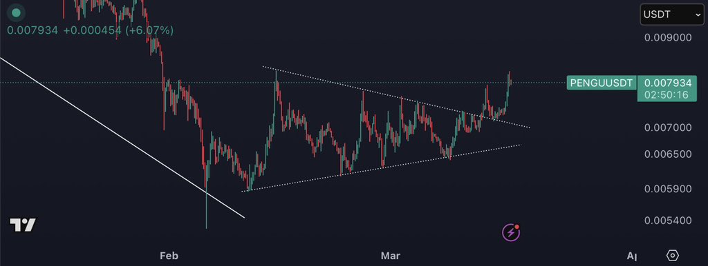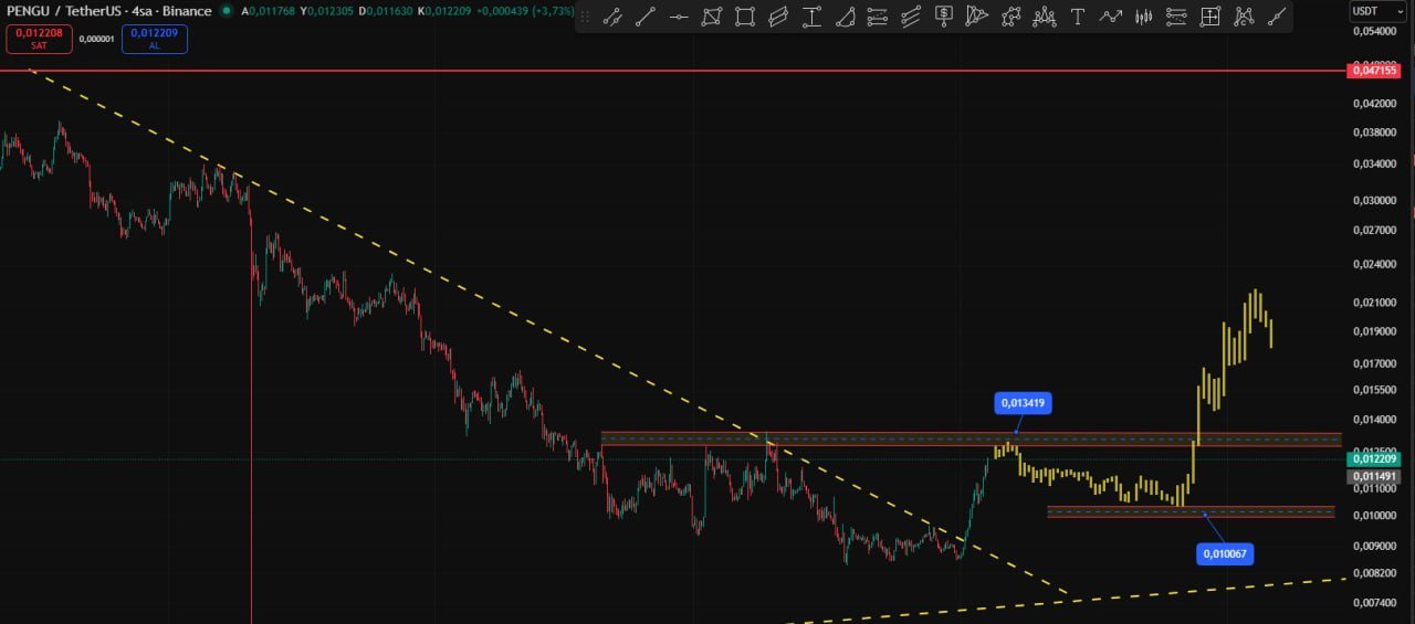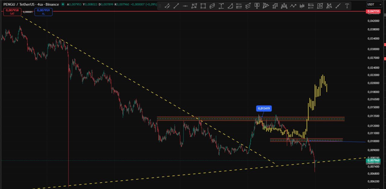- Tendencia de PENGU tras el lanzamientoExtremadamente alcista