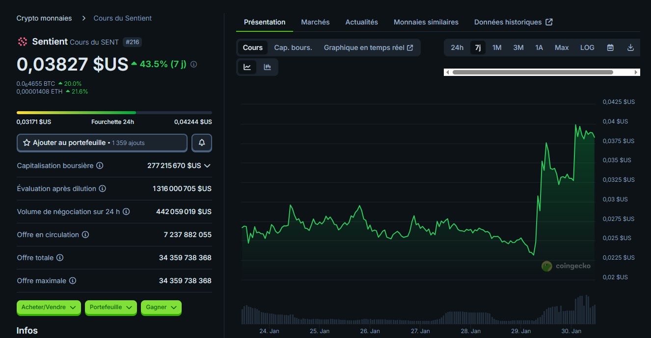 - Tendencia de SENT tras el lanzamientoExtremadamente alcista