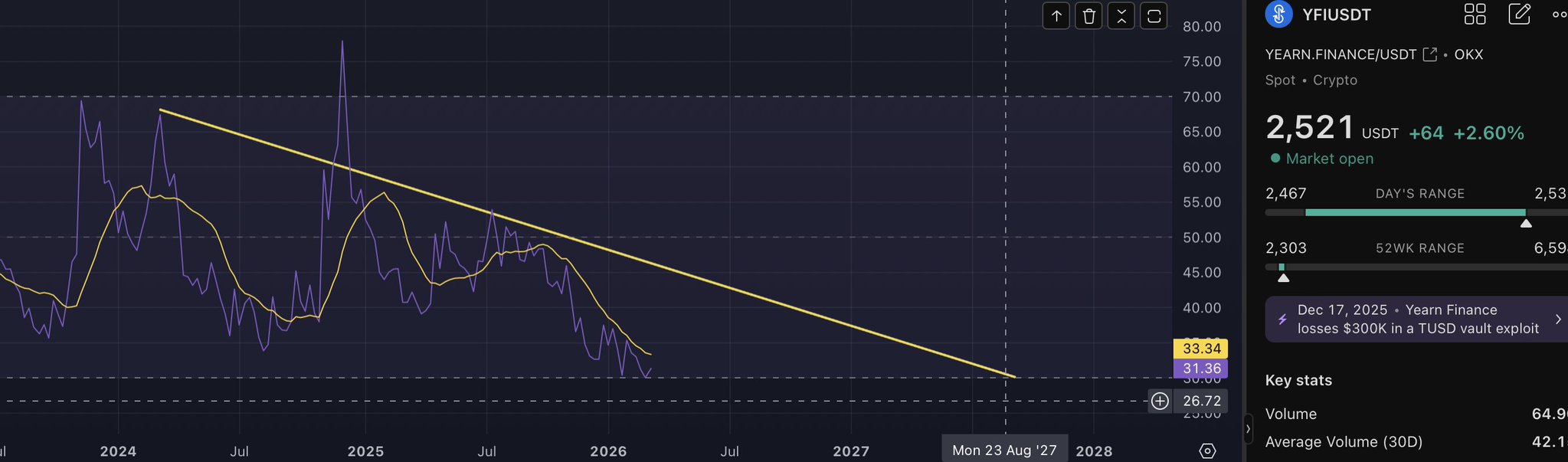 5 1 333 Original >Tendencia de YFI tras el lanzamientoAlcista- Tendencia de YFI tras el lanzamientoExtremadamente bajista