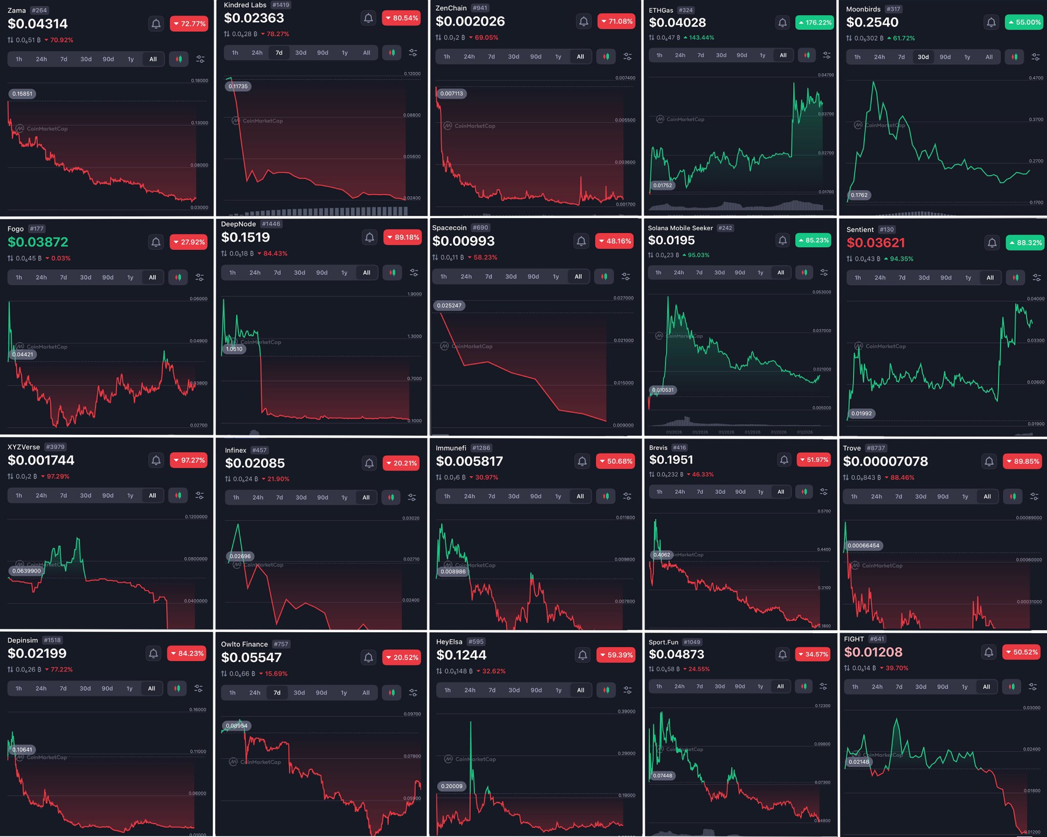 15 7 852 Original >BajistaThe tweet warns of crypto project risks, and the image shows that most projects have sharply declined within a year.