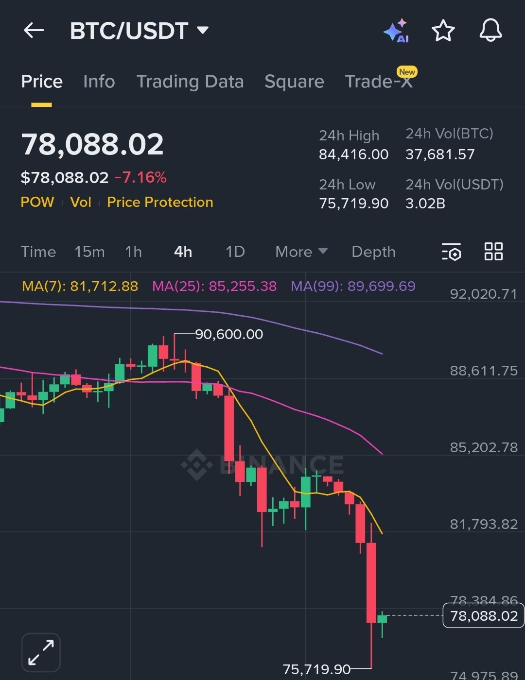 132 56 10.87K Original >Tendencia de ZAMA tras el lanzamientoBajistaBitcoin price plunged 7.16% to $78,088.
