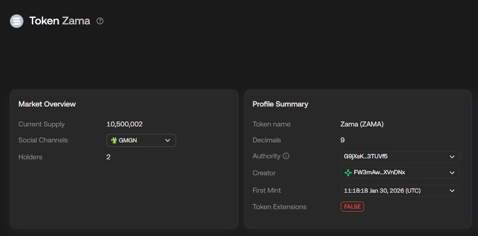 Naeven FA_Analyst Tokenomics_Expert A2.96K @Naeven_tomorrow @zama will be listing on all major platforms trading on binance alpha will start at 12 pm utc, while on exchanges 1 pm utc rand has confirmed everyone will claim tokens at same time also i found $ZAMA token contract on bsc & solana - 0x6907A5986C4950Bdaf2F81828Ec0737ce787519f - 4Zp52aF4hZi9fzH19xpbWKYKQvgLyCN67KFbrQDqeTKh seems like zama trading will go live on solana as well