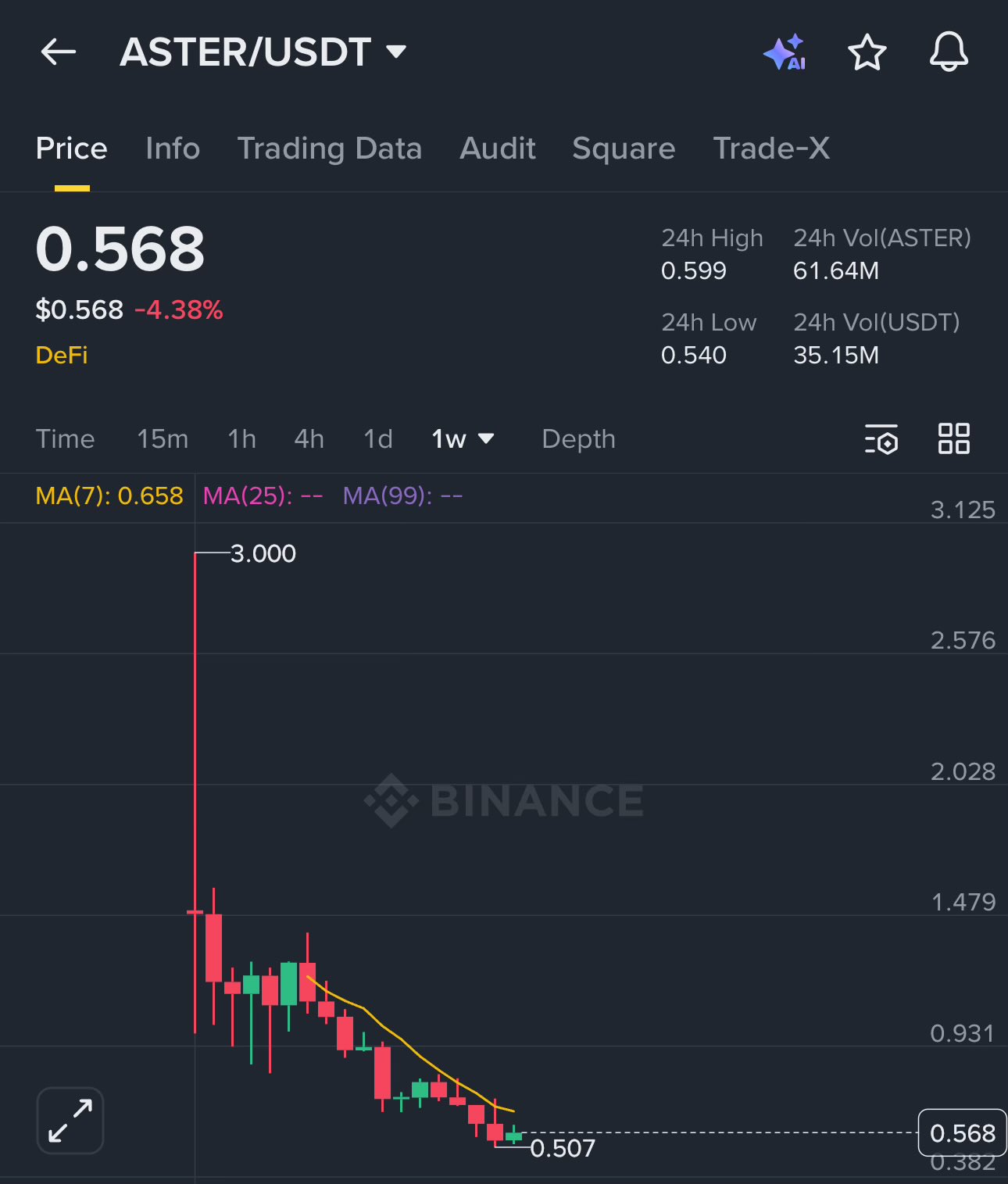ASTER price has dropped sharply from its peak, and the author encourages investors to hold with “diamond hands” and buy on dips.