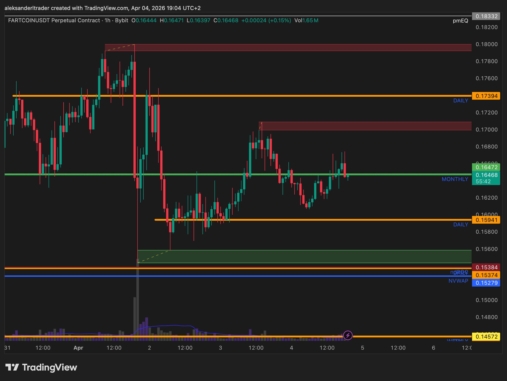FARTCOIN is consolidating near the monthly level, the author suggests staying patient and not taking action for now.