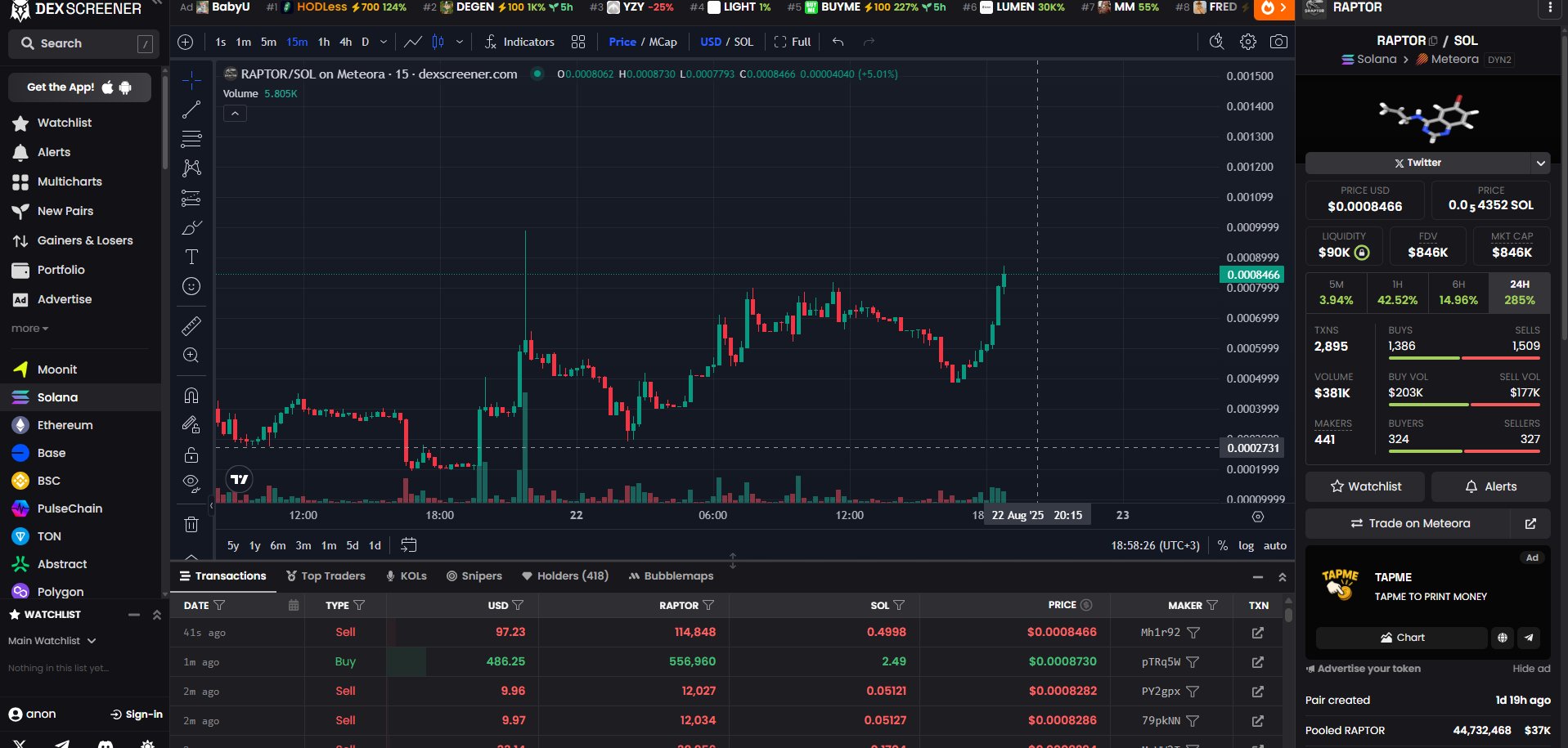 Philosoraptor (RAPTOR) is a cryptocurrency launched in 2024and operates on the Solana platform. Philosoraptor has a current supply of 973,407,926. The last known price of Philosoraptor is 0.00002143 USD and is up 1.45 over the last 24 hours. It is currently trading on 4 active market(s) with $3,253.50 traded over the last 24 hours. More information can be found at https://philosoraptormeme.com/.