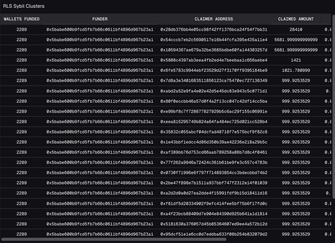 Zun D39.26K @Zun2025🚨 Another @authena_xyz powered sybil protected airdrop got heavily sybilled This project is @RaylsLabs ▫️Raised : $32M ▫️Backers : ParaFi Capital and Framework Venture So far more than 10% of the total airdrop allocation has been claimed by sybil clusters. These sybil wallet addresses follow the same pattern : fund a fresh claim wallet with a small gas fee then claim and transfer to a new wallet or simply deposit to a CEX. ▫️Total sybil clusters (unique funders) : 105 ▫️Total wallets involved : 9,306 ▫️Total $RLS tokens claimed so far : 6,774,894.79 All the data is here : https://t.co/P4FLBBaZ3y First aPriori then Irys and now Rayls airdrop allocations get claimed by sybil clusters. The interesting part : ▫️Irys and Rayls both use Authena POH verification ▫️They both used @Clique2046 to distribute the airdrop At this point what is the need for POH when more than 10% of the allocation is claimed by sybil clusters?
