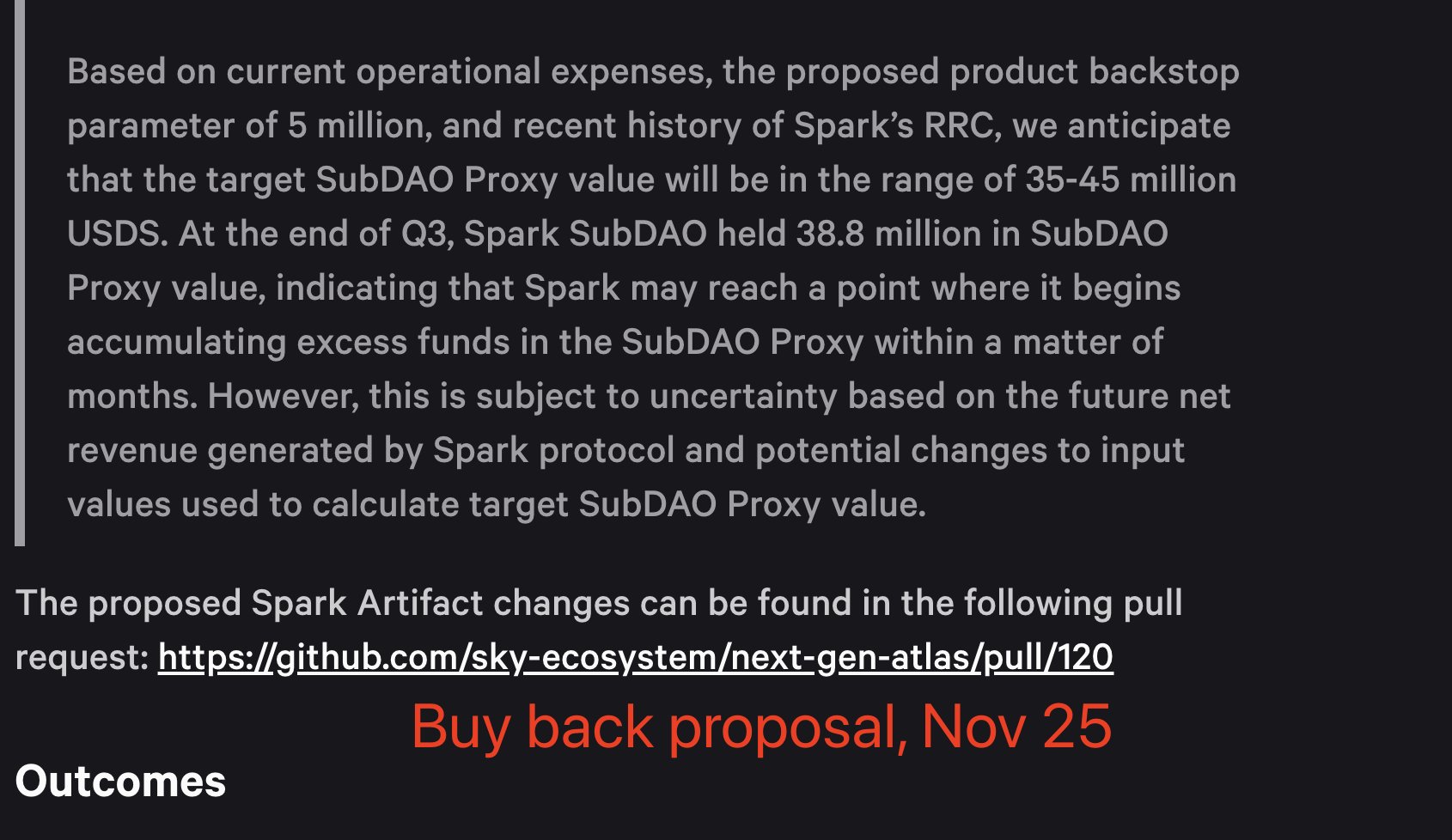 timzz D995 @timzz_sleep‼️ #Buyback Proposal @sparkdotfi @sparkdotfi officially TGE did on June 17, 2025 — and by November 25, it had already released a buyback proposal. This makes Spark arguably the fastest protocol ever to convert real profits into governance-token buybacks. (For context: Aave took ~4 years, UNI ~5 years. Spark did it in just 5 months.) 1️⃣ How buybacks will be executed - Security is everything for a DeFi protocol. Beyond protocol-level risk controls, a strong insurance buffer is essential. So before buybacks begin, Spark will continue allocating profits to: 1)Strengthen the insurance fund 2)Reserve a portion for team operational expenses After ensuring strong risk resistance, profits will fully empower the $SPK token 2️⃣ Buyback ratio & timeline - Since @sparkdotfi became financially independent from @SkyEcosystem in July 2025, the treasury has accumulated $32M (https://t.co/RfNoLUR2N4) in profit (5 months). - Buybacks will start once profit reaches $35–45M. After the treasury reaches $70–90M, 100% o