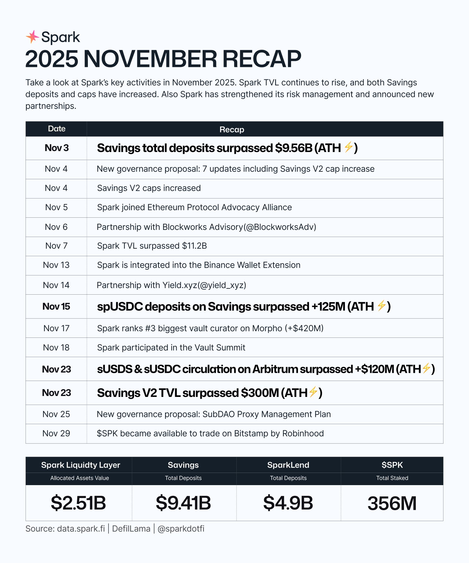 Spark D71.75K @sparkdotfiSpark achieved multiple ATHs and delivered key updates in November. Here’s the November recap ⚡️ https://t.co/zO1u4TKJo3
