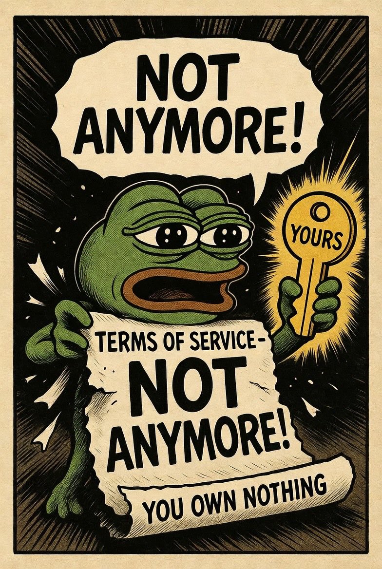 Pepe symbolically reclaims ownership, emphasizing self-custody of cryptocurrency.